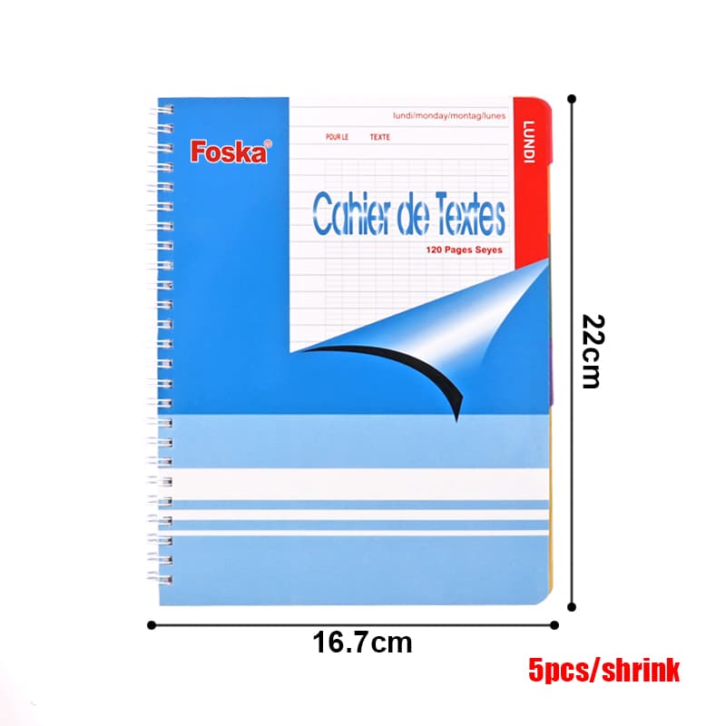 Cahier à spirale classique Foska avec couverture en carton rigide, 60 feuilles, notes d'écriture de bureau, livres laitiers unis, idéal pour les étudiants et le bureau.