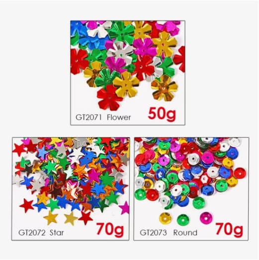 Add sparkle and shine to all your creative projects with our Different Shapes Colorful Glitter. This versatile glitter set comes in a vibrant array of colors and a variety of fun shapes, including stars, hearts, circles, and more, allowing you to customize your crafts with endless possibilities.