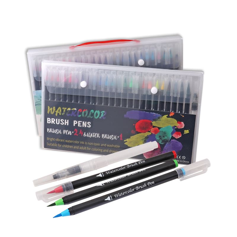 Les stylos pinceaux aquarelle combinent la commodité d'un stylo avec la flexibilité artistique des aquarelles, permettant des largeurs de lignes variées et un mélange de couleurs éclatantes.
