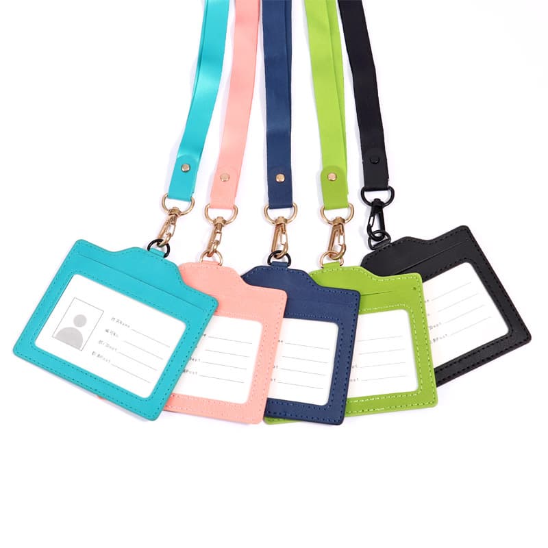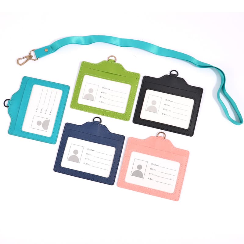 FoskaFoska Horizontal PU Leather ID Holder Badge with Lanyards